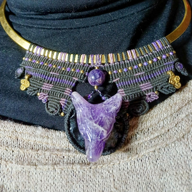 Tête de loup et perles d'améthyste
